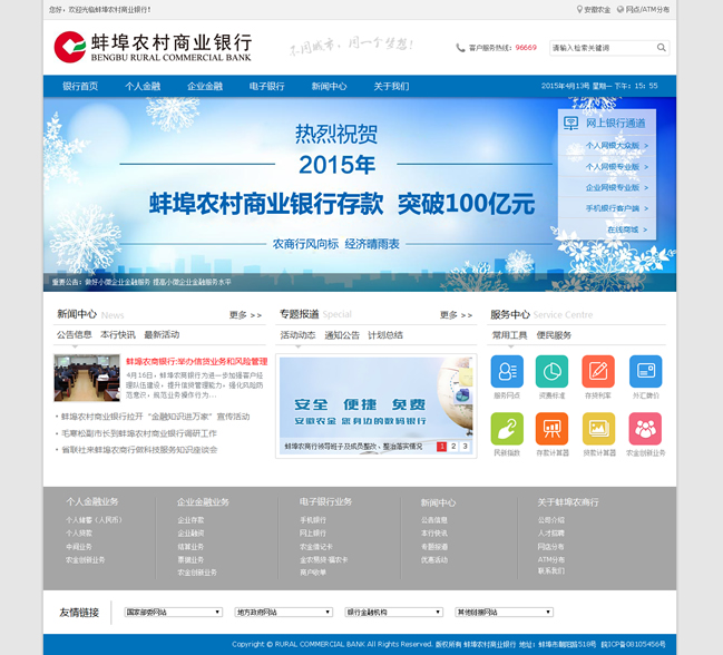 核心提示:蚌埠農(nóng)村商業(yè)銀行股份有限公司(以下簡稱蚌埠農(nóng)商行)經(jīng)安徽銀監(jiān)局批準(zhǔn),于2012年9月26日隆重開業(yè)。蚌埠農(nóng)商行是在原蚌埠市市區(qū)農(nóng)村信用合作聯(lián)社的基礎(chǔ)上,吸收企業(yè)、自然人作為發(fā)起人,依法成立的股份制商業(yè)銀行,注冊資本6億元。 蚌埠農(nóng)商行是蚌埠市區(qū)唯一